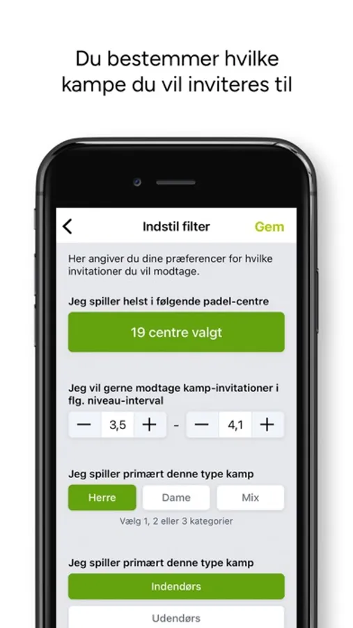 På samme måde modtager du invitationer til kampe, der 100% matcher din padel-profil.