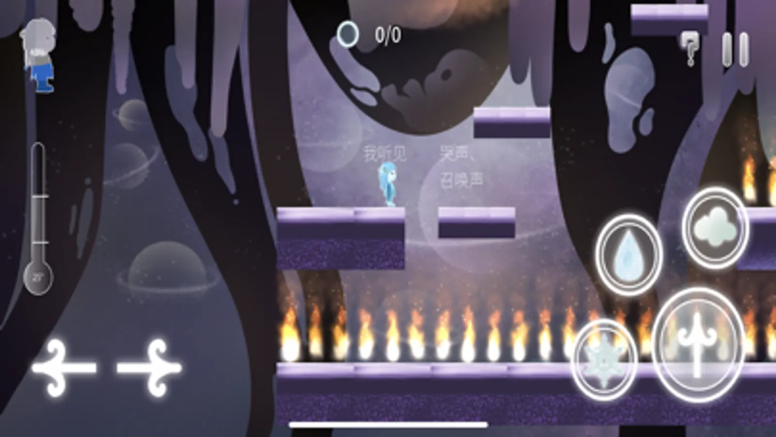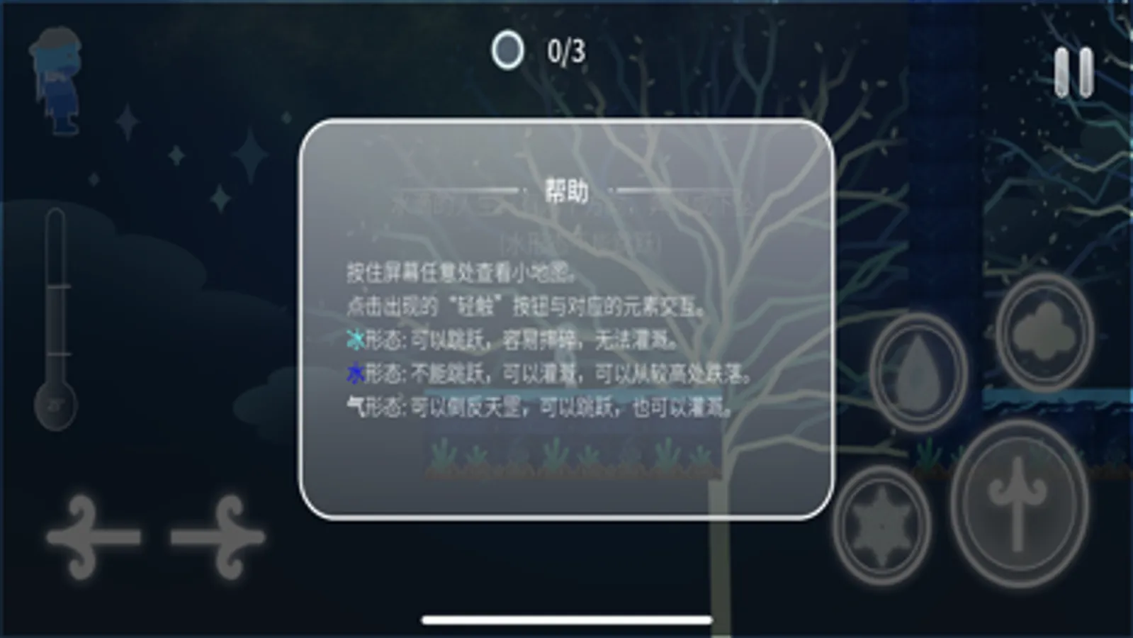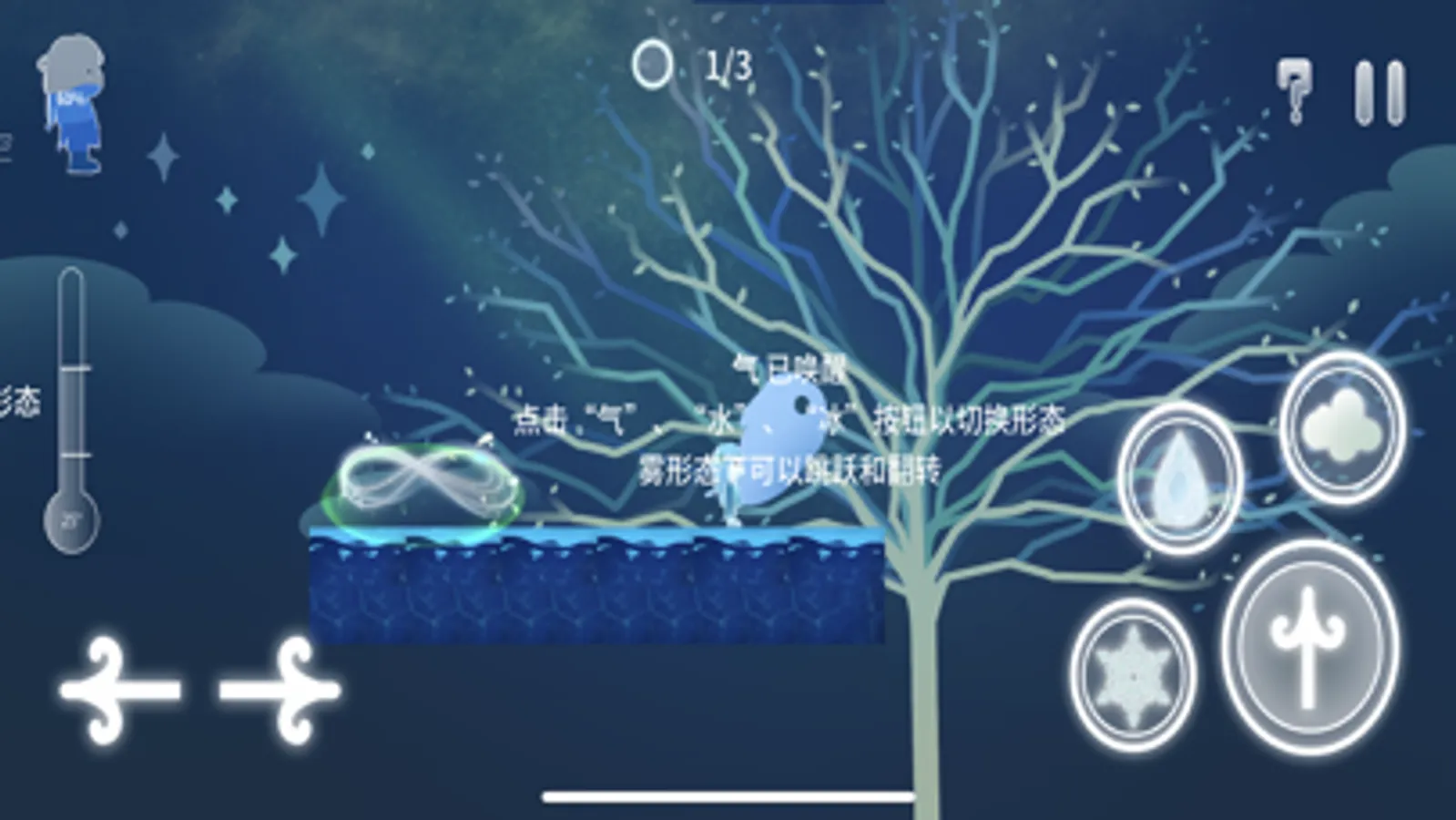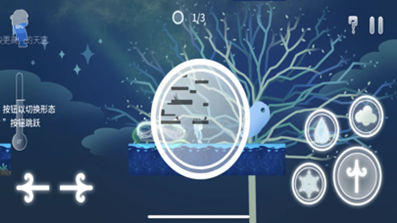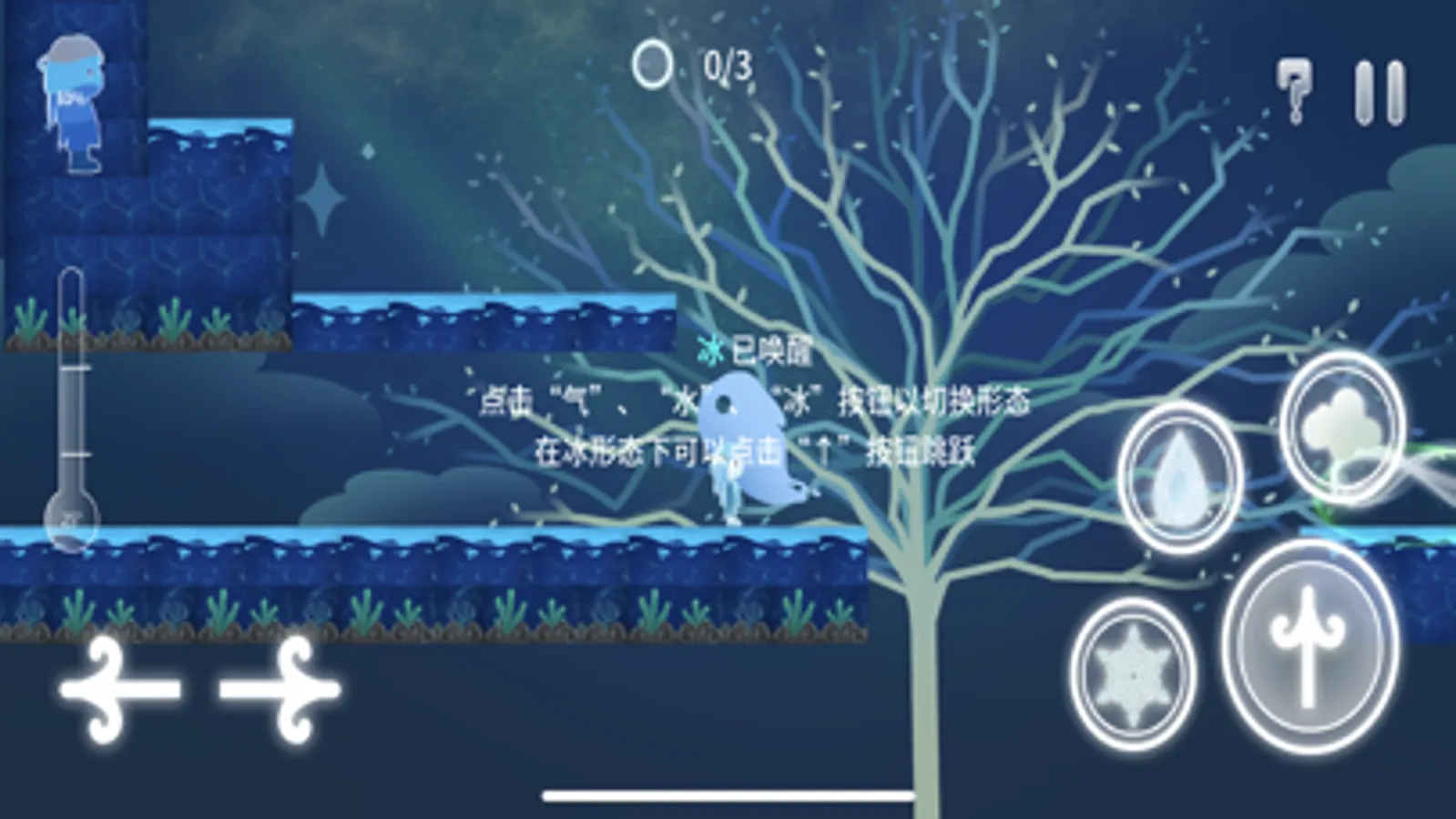 This is a horizontal puzzle solving game. Players need to flexibly use the three forms of water to pass one obstacle after another and many puzzles.