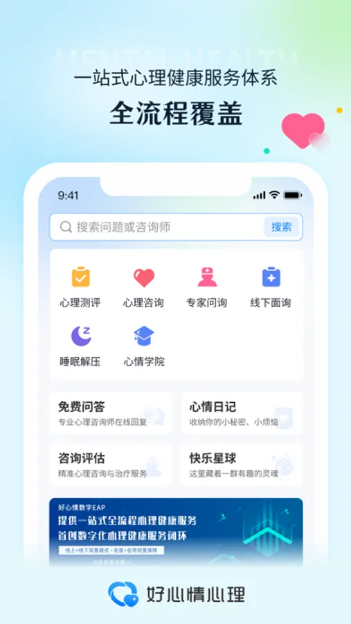 【好心情心理】由好心情健康产业集团有限公司官方出品,是一个专注心理测评、心理咨询、心理疗愈的综合性数字心理健康平台。
