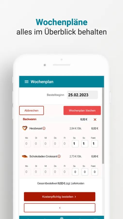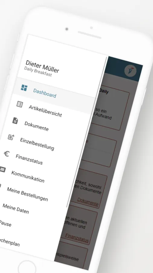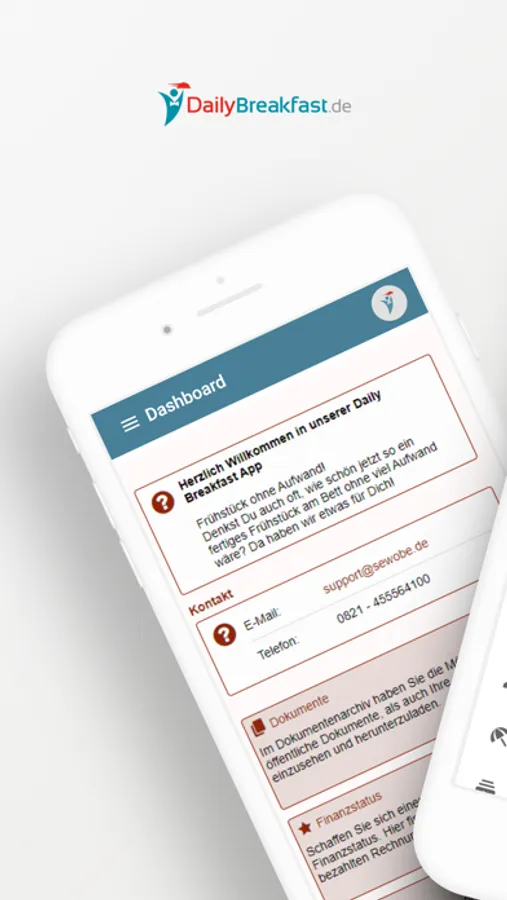 Die App ermöglicht Daily-Breakfast-Kunden den Zugriff auf das Kundenportal, wo Liefer-Wochenpläne, Einzelbestellungen, Bestellunterbrechungen, etc. verwaltet werden können.