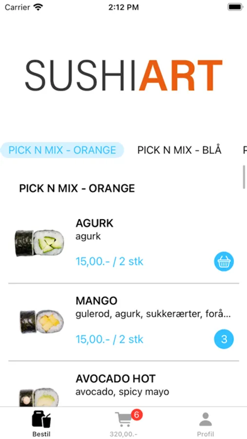 Sushiart som app. Du kan bestille og betale for din sushi her. Vælg din foretrukne butik og afhent din ordre når der er klar