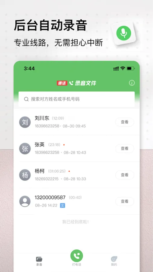 我们提供通话录音的同时显示本机号码,确保每通通话都得到完美存证,而且存储在安全的云端,绝不会丢失。