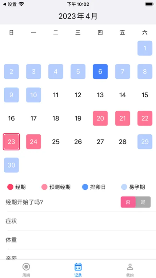 4.症状记录:用户可以记录经期症状、情绪变化、体重等,帮助发现和了解个体差异,提供个性化的健康建议。