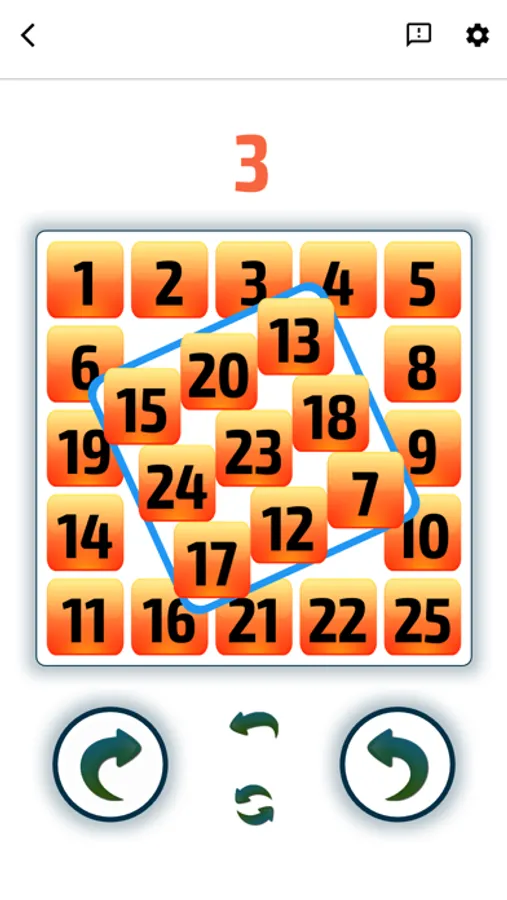 Each block of cells can be rotated either clockwise or counterclockwise, and the player must use their logical thinking skills to determine the optimal sequence of rotations to solve each puzzle. As the game progresses, the puzzles become more complex and challenging, with larger grids and more numbers to arrange.