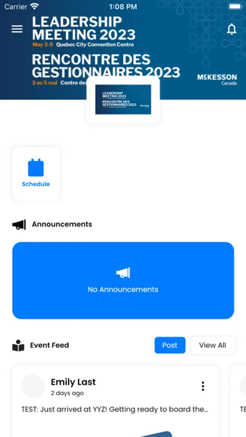 Téléchargez l'application mobile « McKesson Canada Events » qui vous donnera accès à tous nos événements actuels ou futurs à partir de votre téléphone portable. Vous recevrez un code d'accès unique pour vous connecter et accéder aux détails de chaque événement.