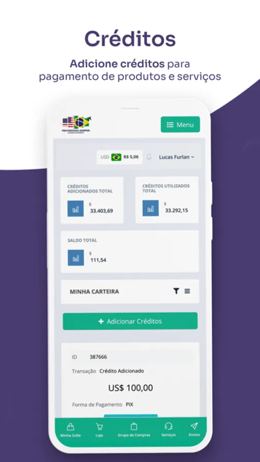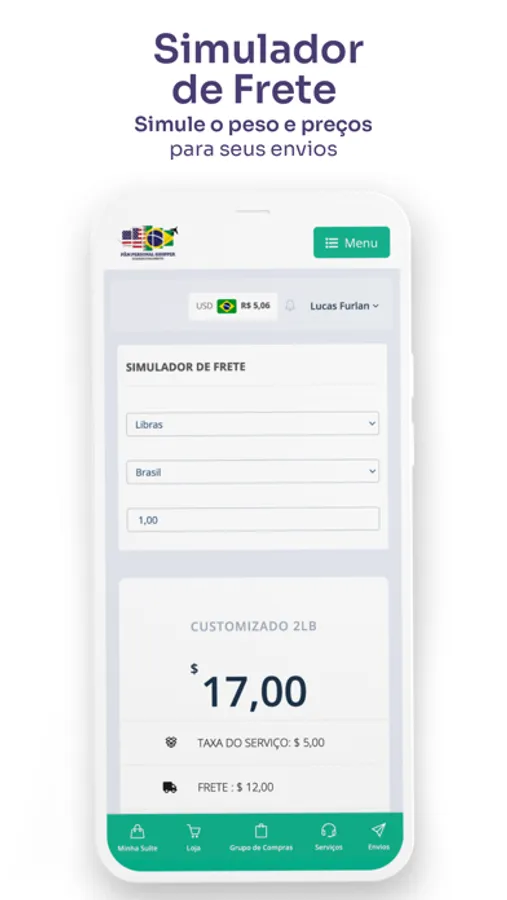 O aplicativo também oferece opções para adicionar créditos e simular frete para os mais variados destinos e pesos.