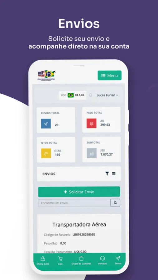 Com uma interface intuitiva, os usuários podem solicitar serviços, envios e rastrear encomendas.