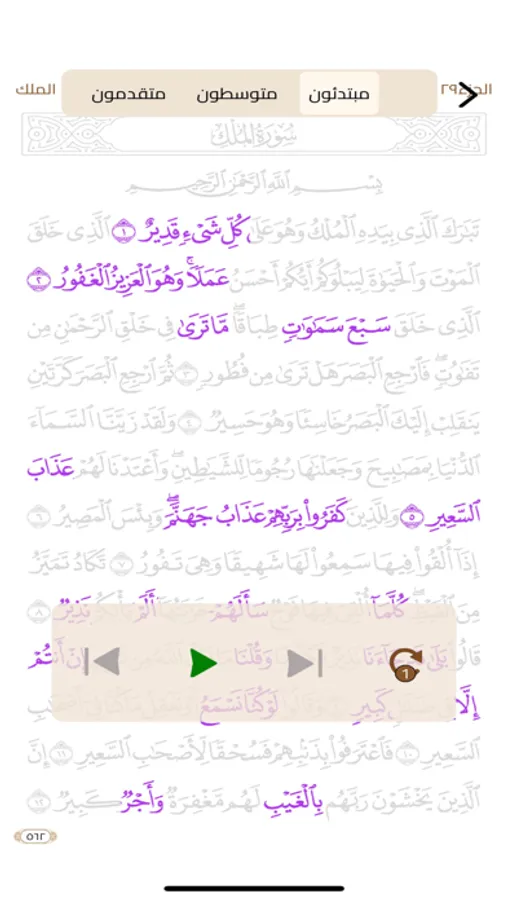 ثم يستمع لتلاوة هذه الصفحة من قارئ من القراءة (يكرر ذلك عدة مرات).