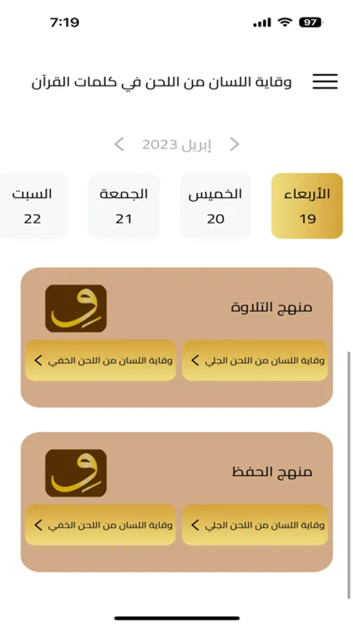 فيقرأ كل طالب حسب مستواه (المبتدئ يقرأ كلمات جميع المستويات ، والمتوسط يقرأ كلمات مستواه مع كلمات المتقدمين،، والمتقدم يقرأ كلمات المتقدمين فقط)، والذي يحدد مستواه معلم وقاية اللسان .