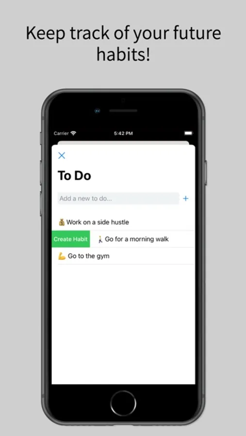 Plan ahead and stay organized with OneHabit's to-do list feature. Easily add habits that you plan on starting in the future, ensuring that you have a clear roadmap for your habit-building journey. This feature helps you prioritize and prepare, so you can seamlessly transition from one habit to the next.