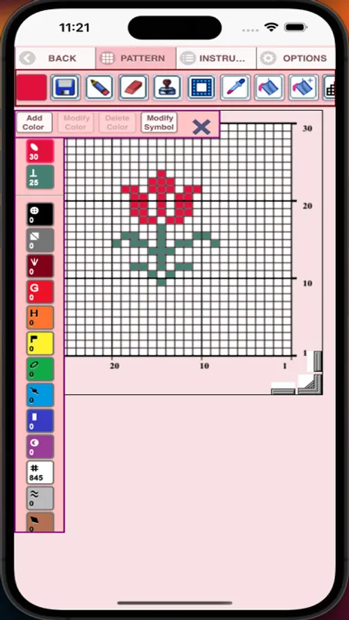19. Symbols icon - display a unique symbol for each different color in your pattern.