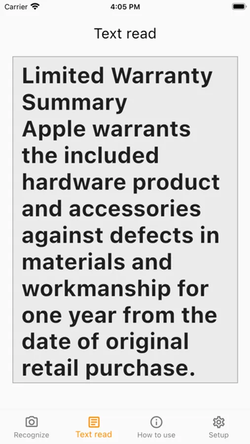 It analyzes the camera image to recognize small text and displays it in the desired size. It is even more convenient because it has a function to read the text in a TTS voice.