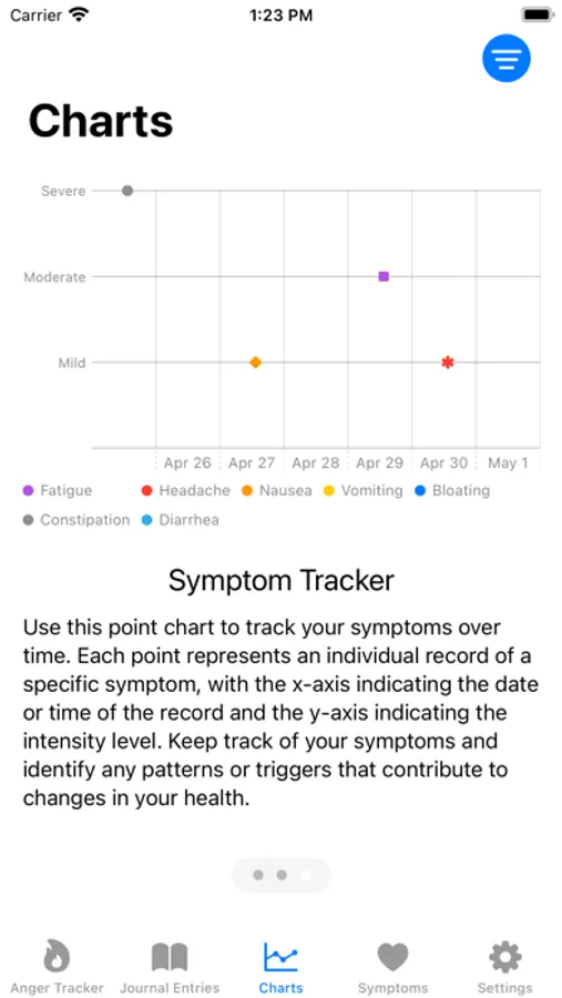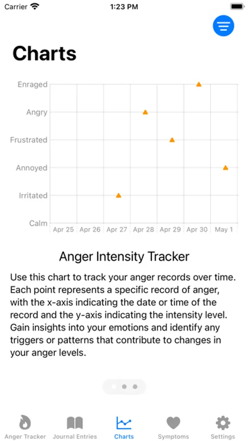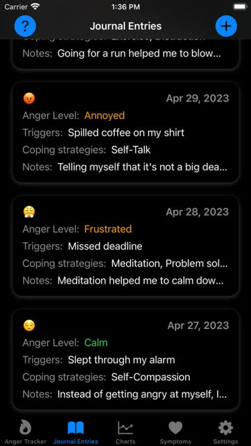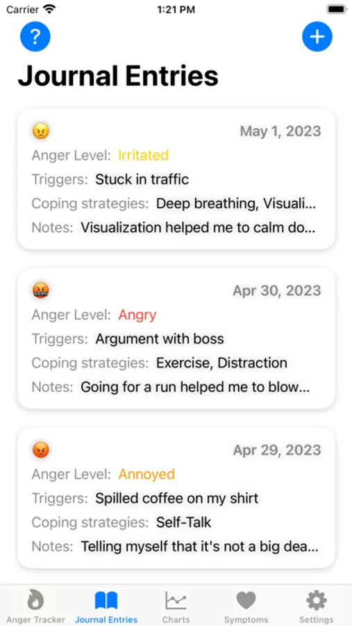 Anger Tracker: Keep track of your anger levels over time to gain insight into your emotions and identify patterns.