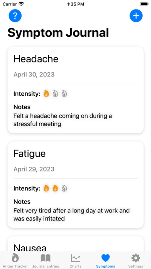 Symptom Tracker: Monitor physical symptoms related to anger, such as headaches, to better understand how your emotions may be impacting your health.