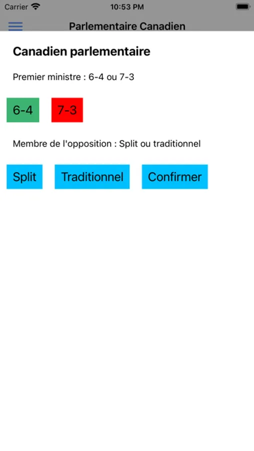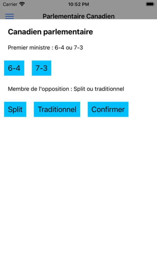 - Canadian Parliamentary (all variants, as well as a user-friendly interface that allows you to choose the right variant according to the preferences of the prime minister or opposition leader).