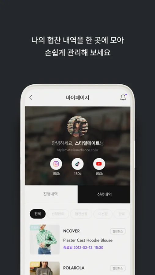 스타일메이트는 새롭게 런칭한 브랜드부터 대세 브랜드까지 다양한 브랜드의 잇템들을 무료로 협찬받을 수 있습니다.
