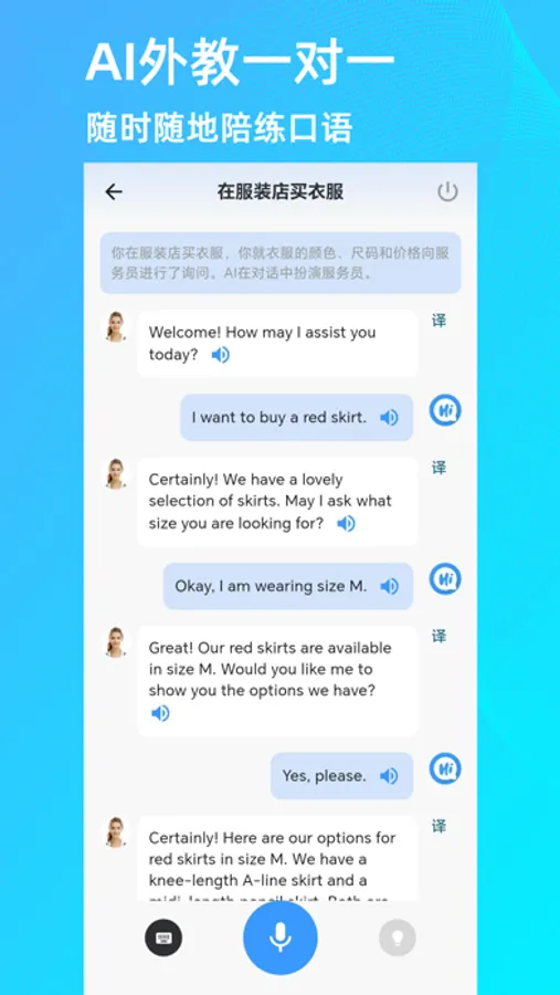 此功能是乐Talk独家开发的核心功能。通过AI大模型,打造“智能外教”,为英语学习者创造母语式口语学习环境。用户选择对话场景后,可自由同智能外教进行口语交流,不受常规英语口语教材对会话内容的限制,有效提升现实生活中的英语口语交流能力。
