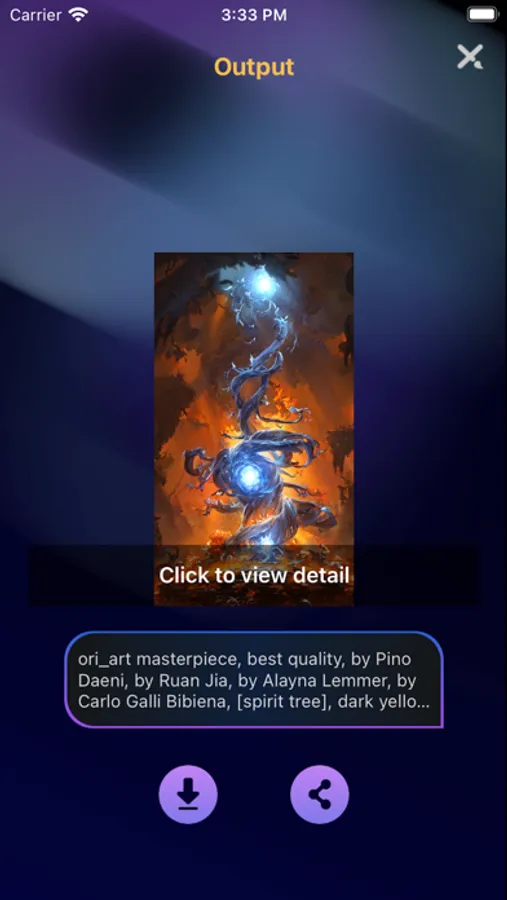 Click [Create] and wait a few seconds, you will see a unique fantasy art.