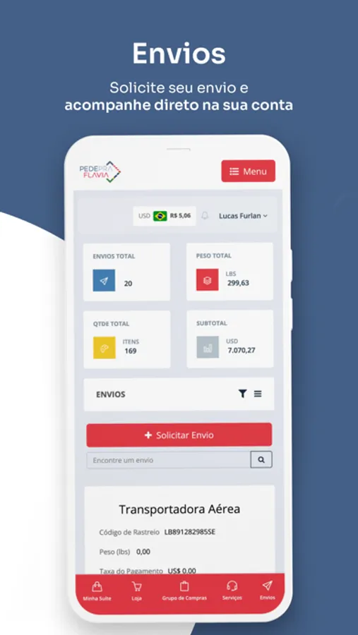 Com uma interface intuitiva, os usuários podem solicitar serviços, envios e rastrear encomendas.