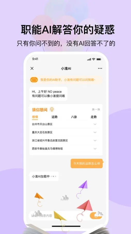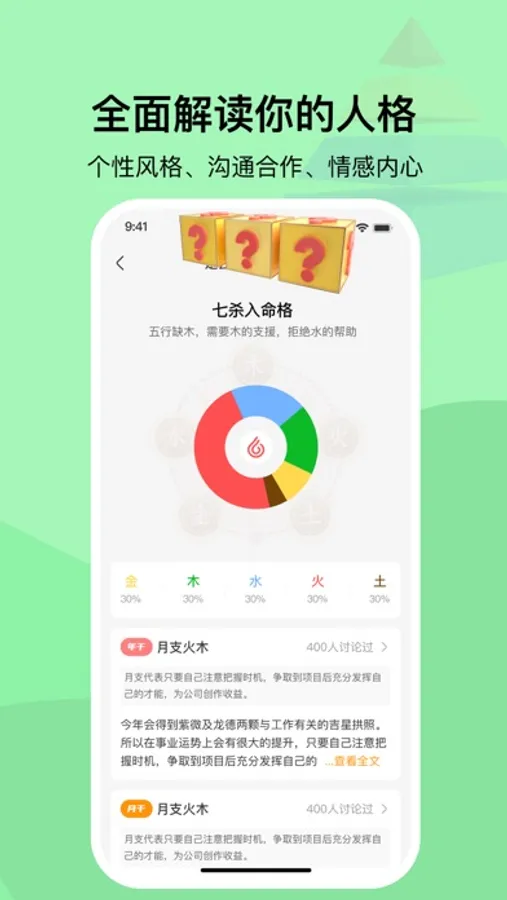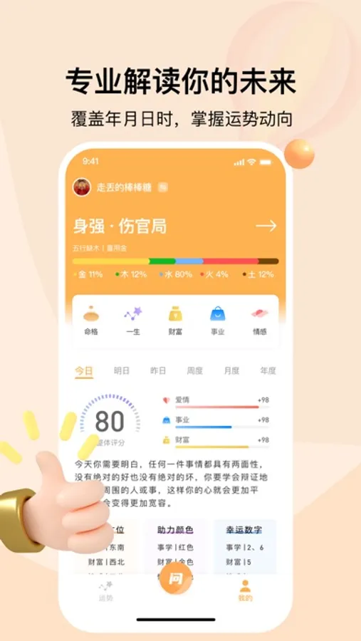 【心情分析】在线查看不同时间段、不同年龄段的心理状态,让你对自己的情绪发展一目了然,更有详细的运势分析帮助你在不同阶段拥有更加稳定的情绪体验。