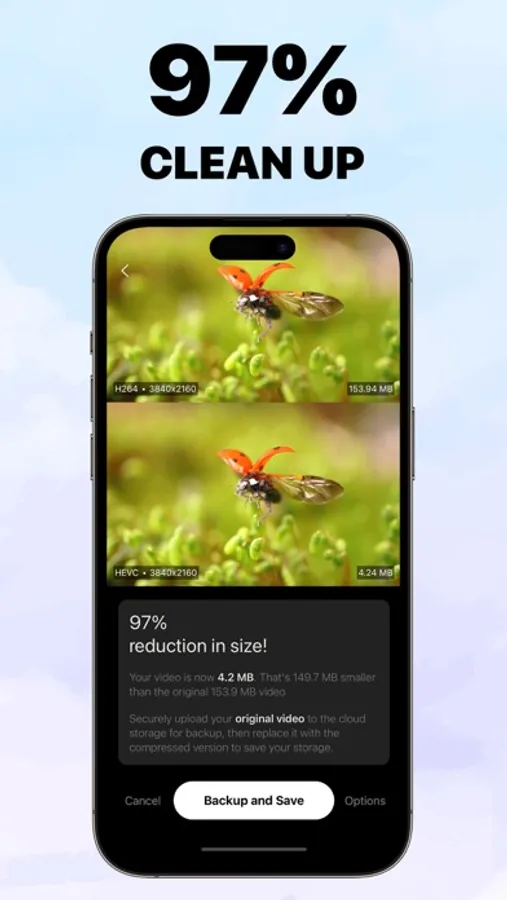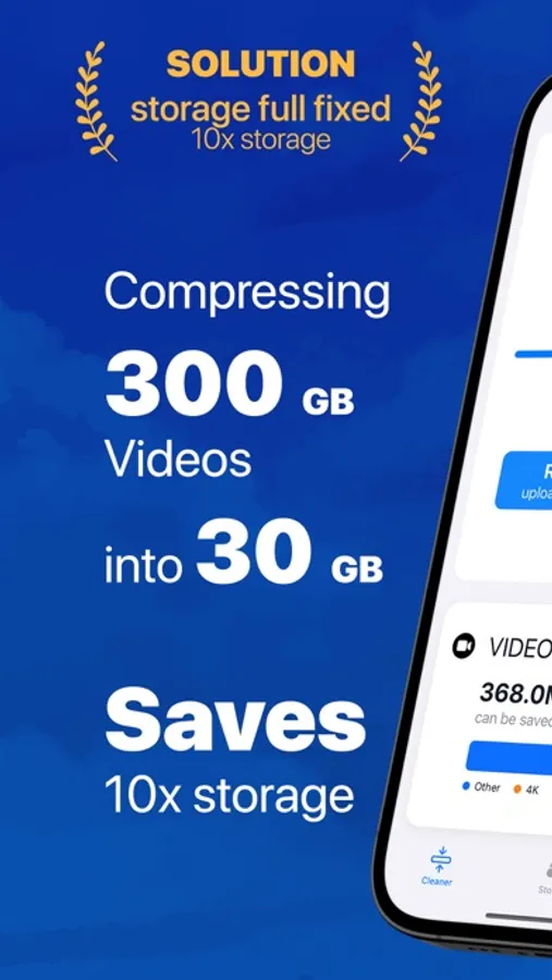 Cleaner - Advanced AI powered algorithms that compress your videos and photos without compromising quality! Free up iPhone storage space using the compressed version, for up to 10x times.