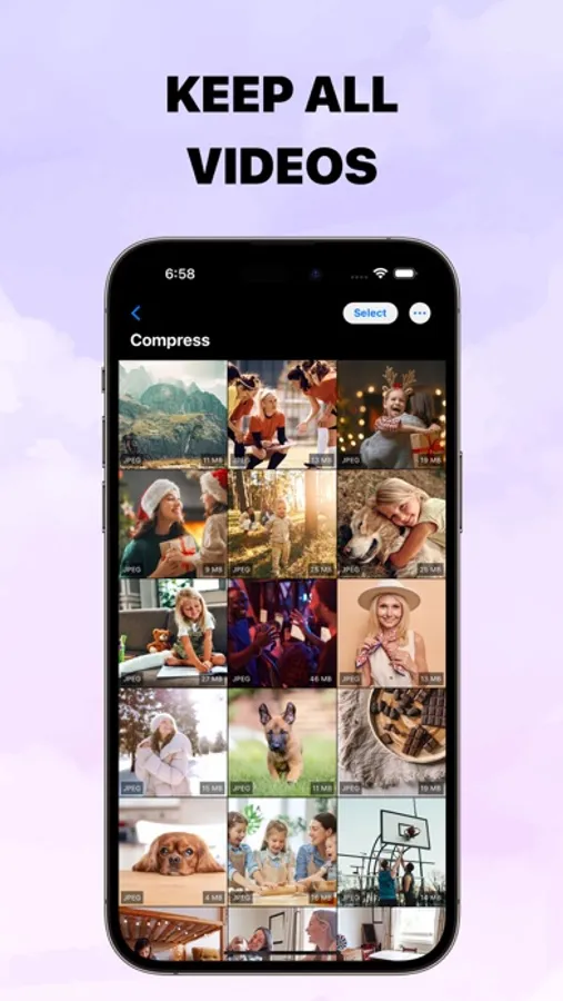 • Easily select the photos and videos you want to compress, whether it's entire albums or specific files.