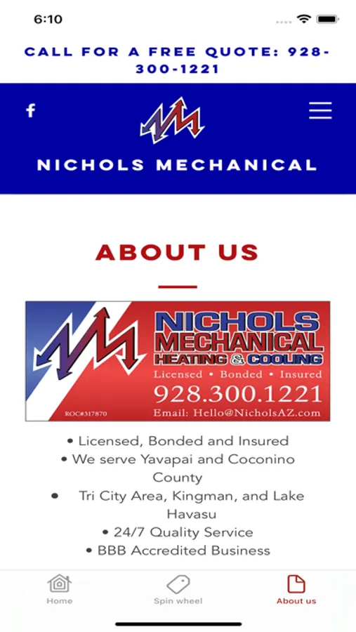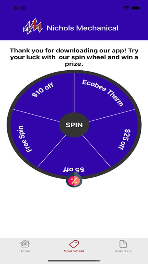 In addition to the convenience of our booking calendar, the Nichols Mechanical App continues to offer all the great features you know and love. From the exciting spin wheel with its fantastic prizes, including discounts and free merchandise, to accessing detailed information about our services and contacting us directly, our app is your one-stop solution for all your HVAC and plumbing needs.
