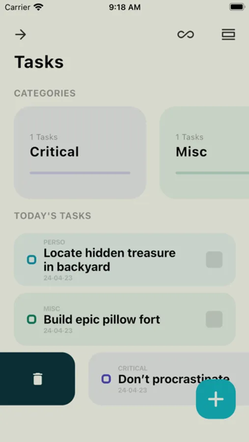 Flexible Task Organization: Create, edit, and organize your tasks with ease. Focet allows you to sort your tasks into user-created categories, providing a personalized and efficient way to manage your daily responsibilities.
