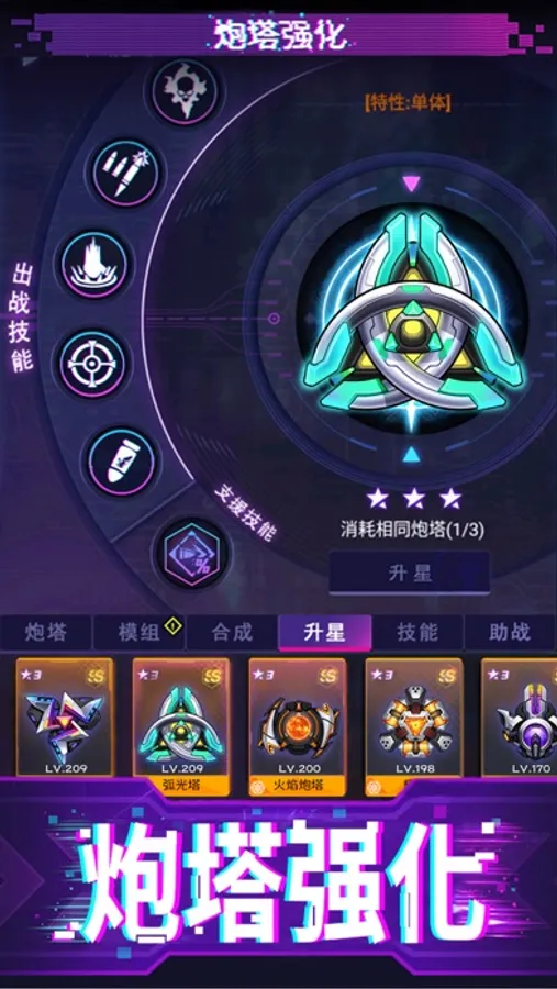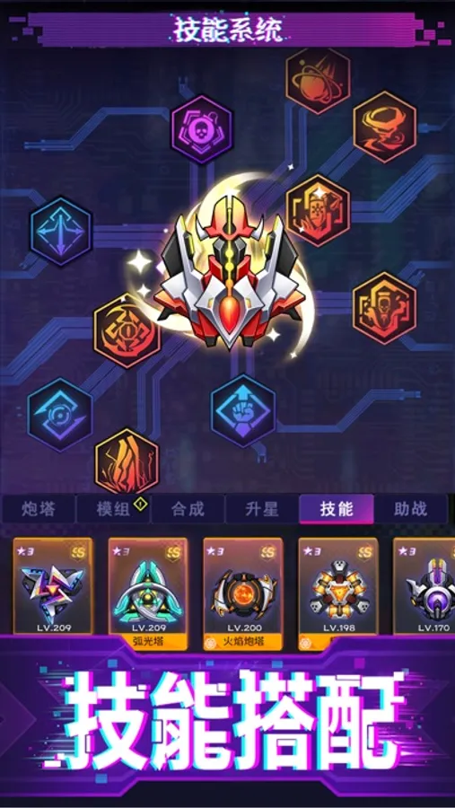 赛博朋克策略放置塔防休闲游戏,无限模式割草快感,以炮塔自身技能+装备镶嵌技能玩法为核心,玩家可以放置不同的炮塔,可以自己选择炮塔的成长方向,炮塔、技能产生出无限的组合方式,没有固定套路,全凭玩家自己开发,在星球上演争夺大战。通过关卡、塔防对战,体验恢宏的星际战争;无限模式一战高下,攀登天梯,夺取荣誉。还能跟朋友一起挑战艰巨的任务,解锁强大的单位和技能让你的策略不断升级。还增加了多种东西,竞技玩法、肉鸽元素紧密制作中,一起加入这史诗般的游戏吧!