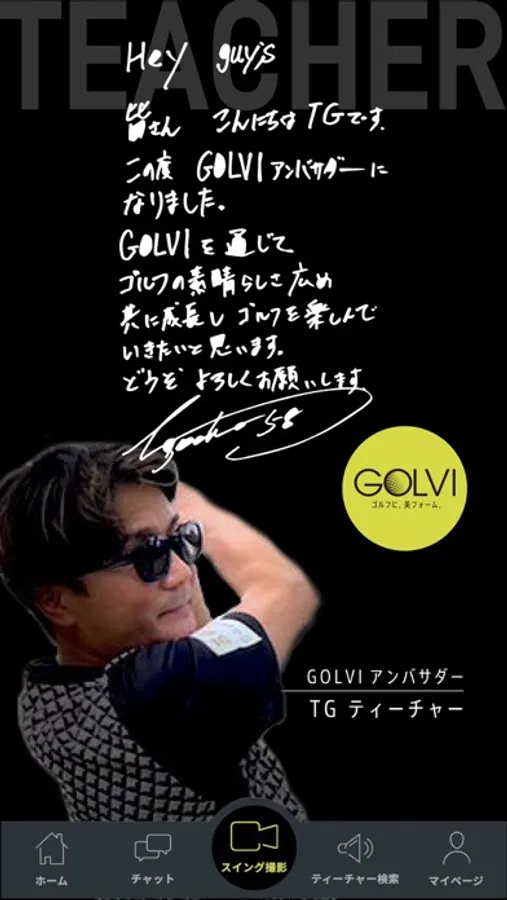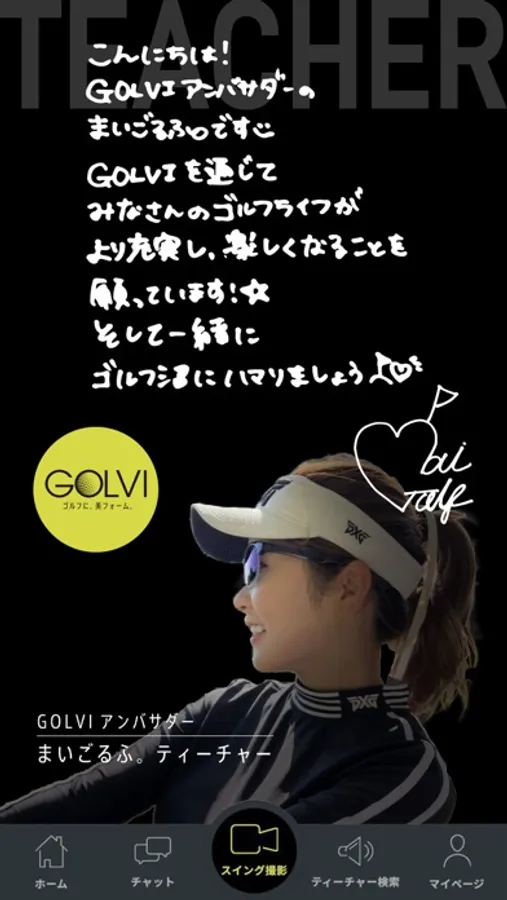 GOLVIは、プロアマ問わずゴルフを教えたい人を「ティーチャー」と呼び、インストラクターから、ゴルフ系ユーチューバー、ゴルフ女子インフルエンサーまで幅広いジャンルの「ティーチャー」を揃えています。ゴルフを教わるのはプロだけではないはず!お気に入りのティーチャーを見つけて、アドバイスをもらいましょう!