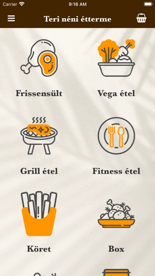 A Teri néni étterme Budaörsről szállítja nagyszerű ételeit megrendelői részére. Kínálatunkban megtalálhatóak frissensültek, köretek, normál adagban, illetve fél-, és egy kilogrammos kivitelben is. Továbbá rendelhetőek még vegetáriánus ételek, grill ételek, frissensült boxok, fitness ételek, saláták, savanyúságok, öntetek, desszertek, rétesek, üdítők, kávék. Ha szeretnél egy finomat enni, rendeld meg online pár kattintással!