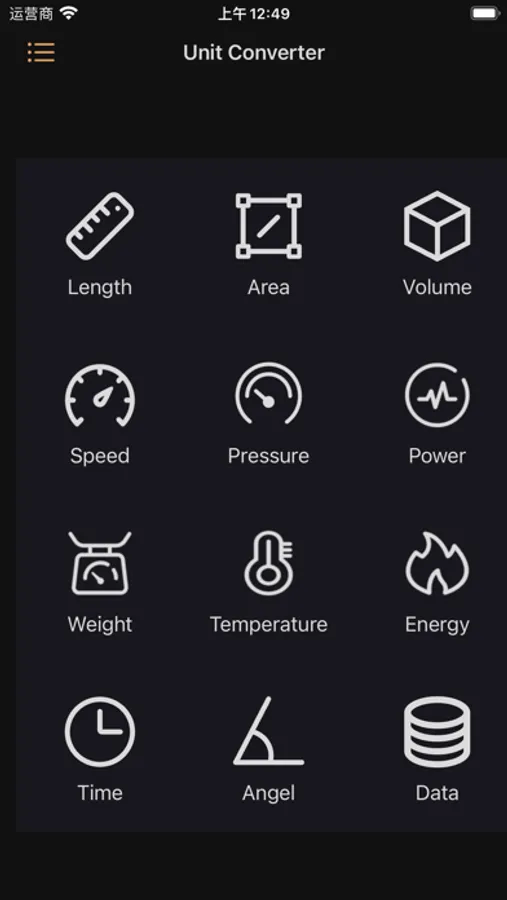 ▸ Supports length, area, volume, speed, pressure, power, weight, temperature, energy, time, angle, and the data capacity.