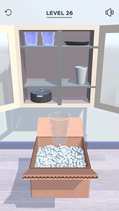 Place the objects from the boxes in the cabinet in a balanced way.
