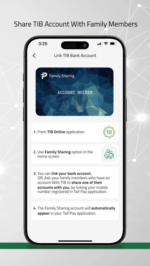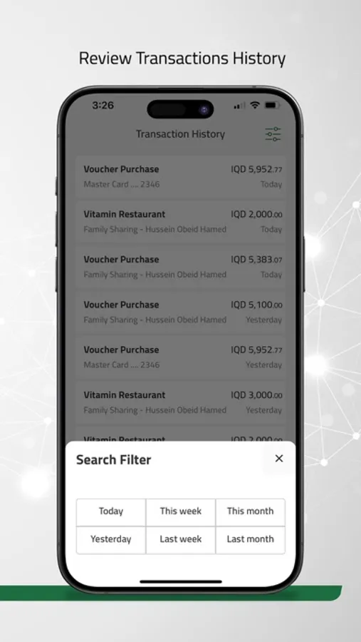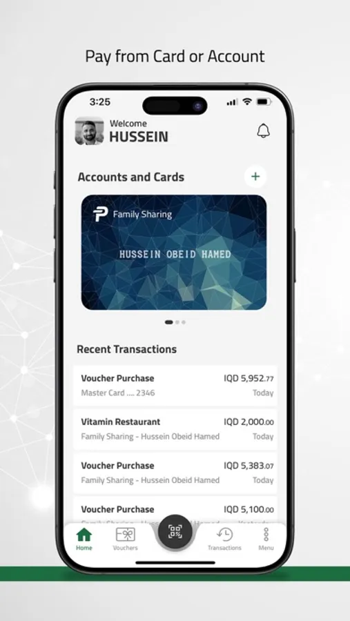 Payment is made from the Visa/MasterCard cards added within the application or the TIB Bank account that has been shared (family sharing). Payment is made to stores/points of sale without the need for the customer to have Internet using sound payment, as this service will contribute to offline payment in a contactless manner. You avoid mistakes in entering the card number when paying, you can save your card and its data from being stolen. All family members can use one card for payment or one account at TIB Bank. You can also buy vouchers through the application in addition to many features within the application.