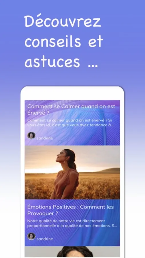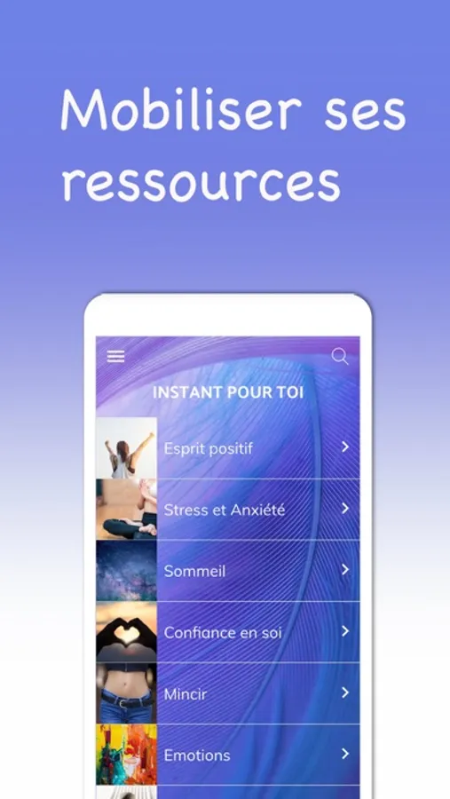 Prenez un instant pour vous avec des séances d’autohypnose et de méditations anti-stress, pour le sommeil, pour la confiance en soi, pour l’anxiété, mincir, apaiser des émotions difficiles, provoquer des changements profonds et durables, faire une petite pause ressourçante, adopter la zen-attitude… Retrouver les hypnoses de Sandrine Belmont, Docteure en psychologie et hypnothérapeute.
