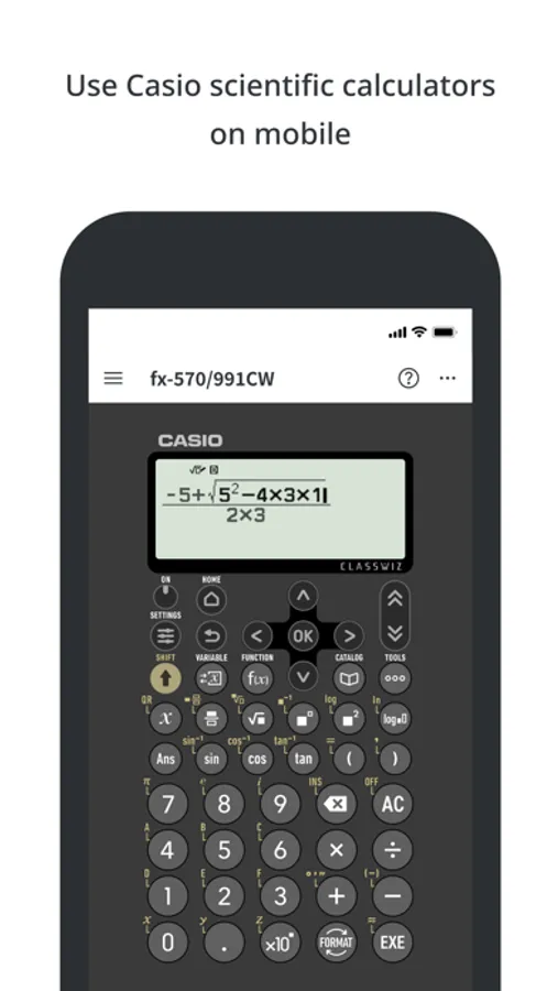 The app is operated in the same way as Casio’s ClassWiz scientific calculators.