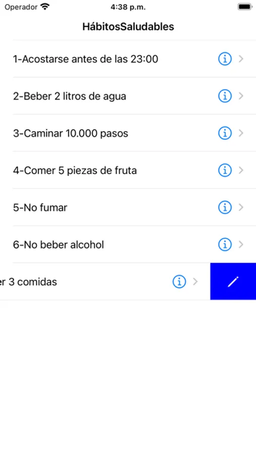 Con Hábitos Saludables podrás ver como evolucionan tus hábitos de forma gráfica. Cada día registra el nivel de cada hábito. Luego puedes ver una gráfica con los niveles de tus hábitos por semana, mes y año. Añadida feature contador de pasos. Si el número de pasos llega a 10.000 se inserta en el hábito el nivel automáticamente.