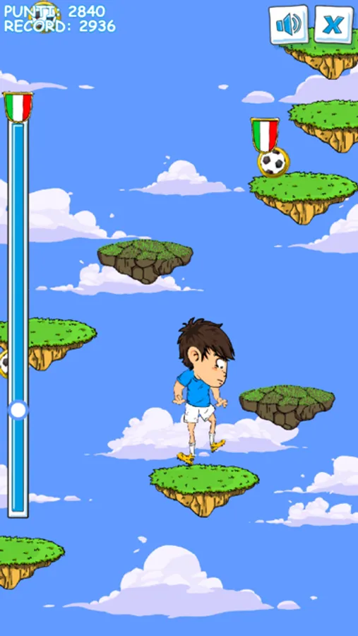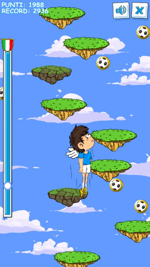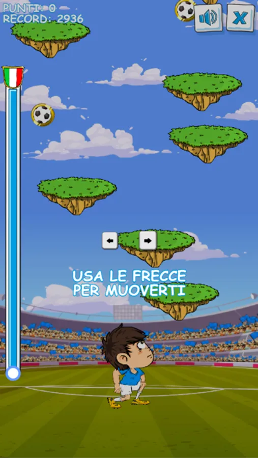 Salto dopo salto, potrai raccogliere i mini-scudetti in campo per "mettere le ali" al tuo calciatore,