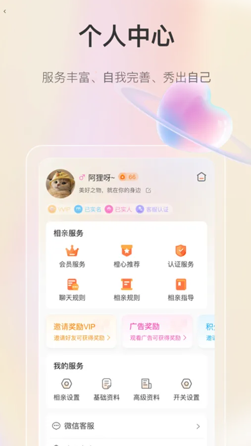 Ruolove APP not only provides general matchmaking functions, but also sets up special services such as matchmaking, relatives and friends recommendation. Matchmaking can allow users to have more in-depth exchanges with their favorite objects and understand each other's inner world, while relatives and friends recommendation provides users with a community of people looking for fate, so that lovers can have more opportunities to meet, know and fall in love here. In addition, we also set up the predestination test function, according to the user's personality, hobbies and other aspects of the test, to recommend users to meet their needs more partners; According to the location of the same city can also recommend the attached friends, increase the success rate of blind date.
