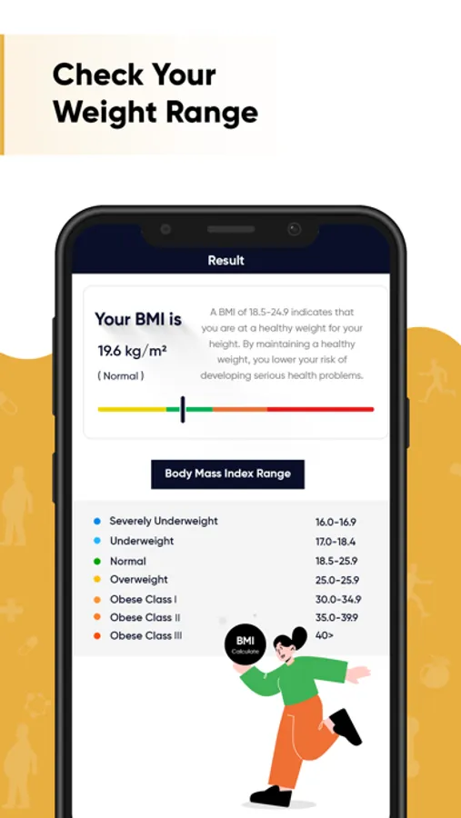 It's time to calculate your BMI Score right now. To find out more about your healthy weight range for your height, download the free BMI Calculator App.
