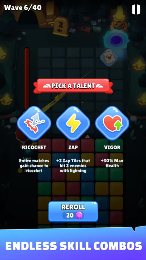 Rogue Blast combines the classic match mechanic with the rogue-lite elements that keep you on your toes. Strategically match colorful blocks to defeat enemies, cast powerful spells, and explore the world of the Gods. Every decision you make counts, as you advance through a series of unique levels that will test your skills and wit.