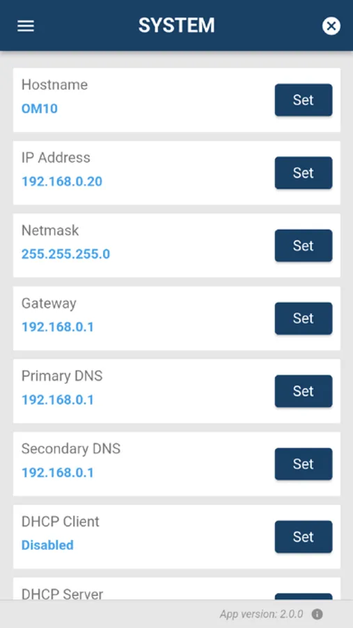 For the device versions OM10 0646 and OM10 0648, a quick setup guide is available, which allows the modification of all important parameters in one menu.