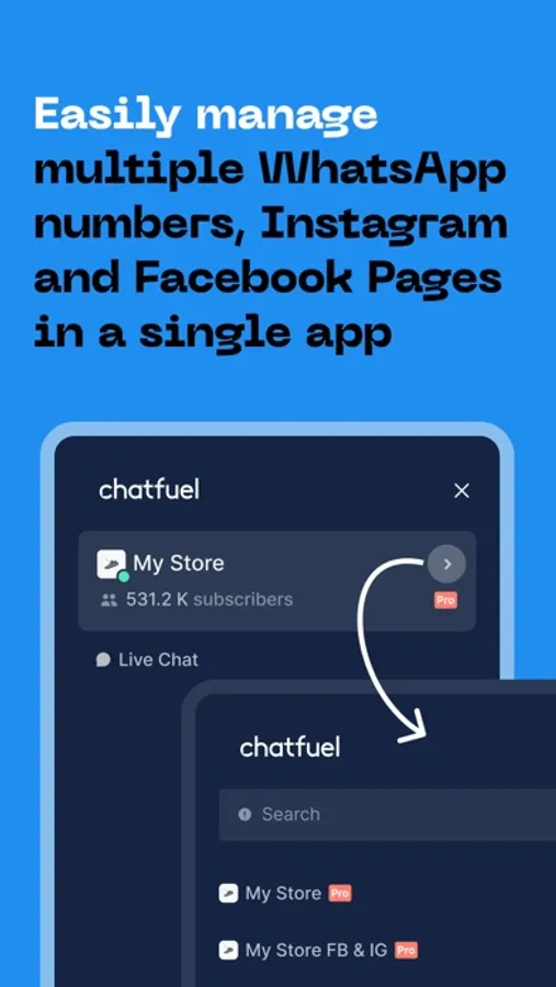 Use Chatfuel to efficiently engage with your customers on WhatsApp, Facebook, and Instagram.