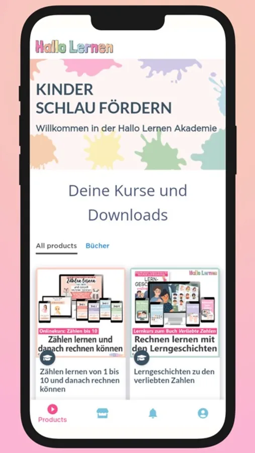 Siehe dir deine Kurse, e-Books und PDFs von Hallo Lernen bequem in dieser App an.