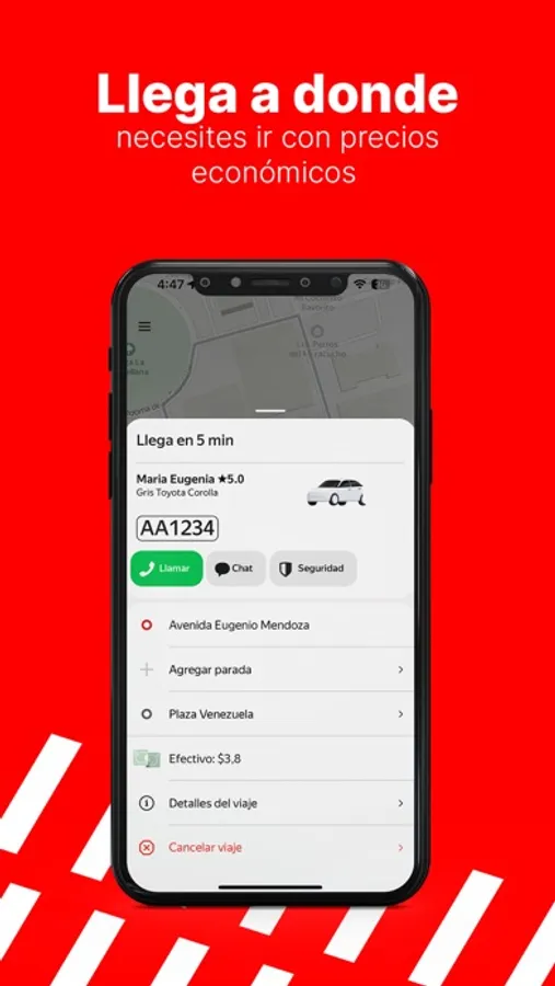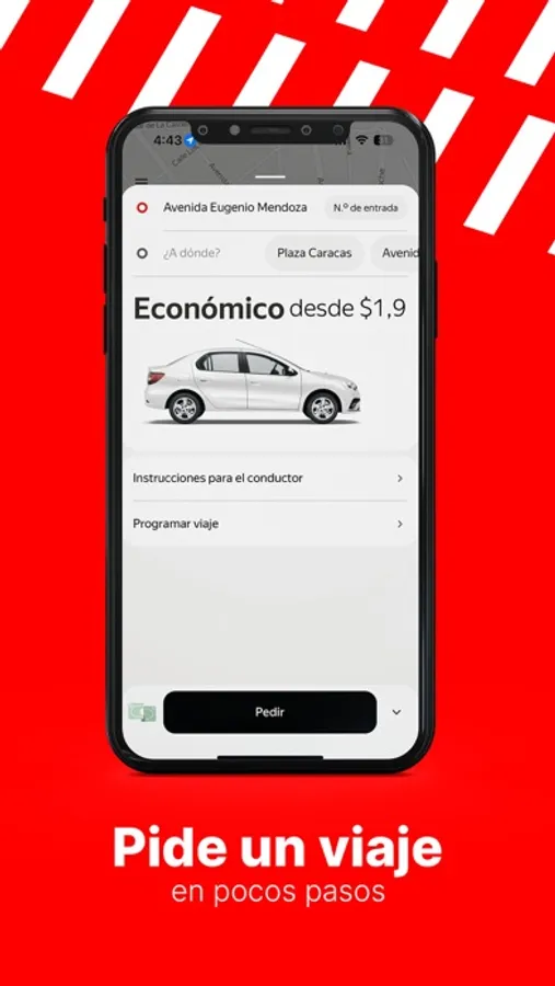 Cuando necesites viajar, selecciona el punto de inicio del viaje, tu destino y la tarifa que quieres pagar. Toca Pedir y el conductor llegará en unos minutos o en el horario que le indiques.