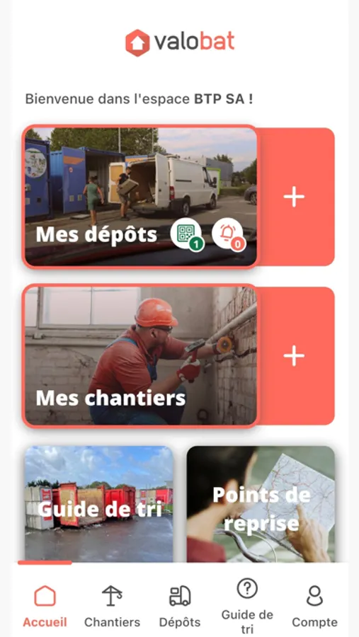 L'Application ValoDépôt s'adresse donc aux Détenteurs de déchets issus de la REP PMCB. Ces détenteurs de déchets sont les entreprises de travaux, les artisans du bâtiment ou encore les particuliers bricoleurs. Elle permet de faciliter le dépôt des déchets issus d'un ou plusieurs chantiers auprès d'un Point de reprise.