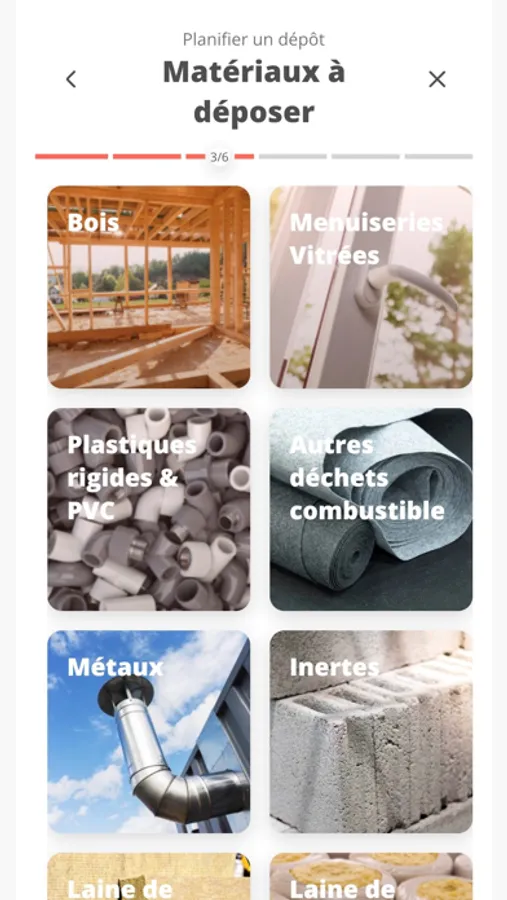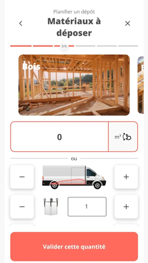 - Saisie des quantités à déposer, pour chaque type de matériau.