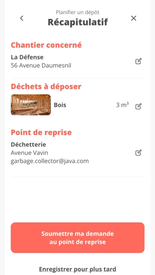 - Soumission de la demande de dépôt au point de reprise choisie.