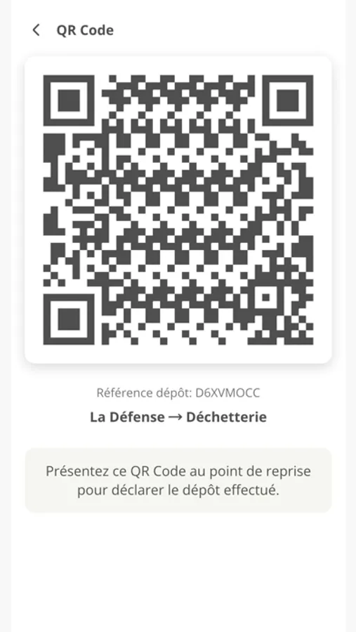 - Affichage d'un numéro et d'un QR code, à présenter lors du dépôt.