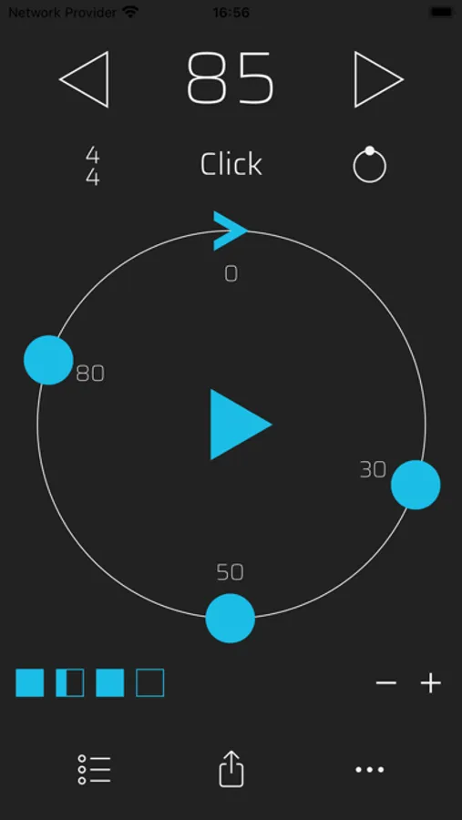 You can add as many points as you like within the beat to make unique rhythms to practise, try some of the presets, and clear the whole beat at any time with the reset button.
